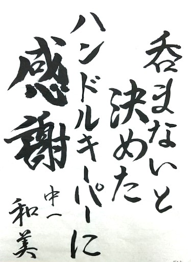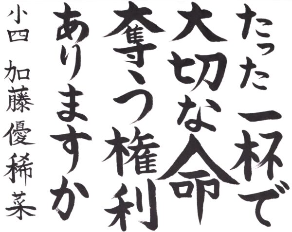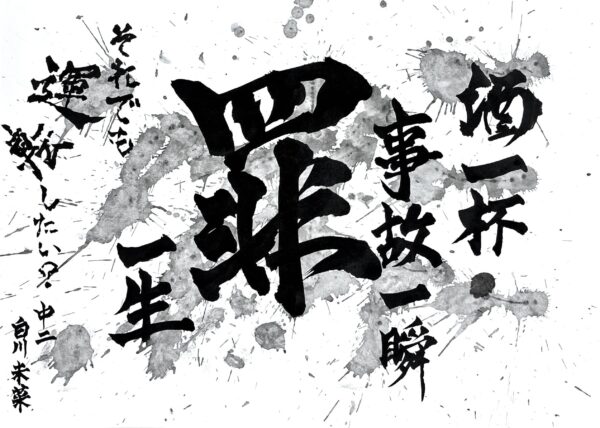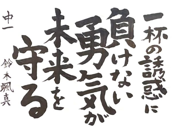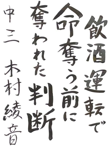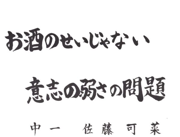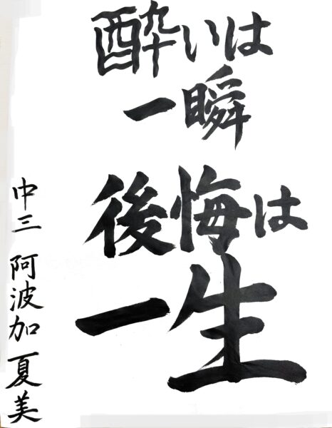 川村 美佳さん(中3) お酒を飲む大人の皆さんにも、自分にしか進めない人生を大切にしてほしいという思いで書きました。