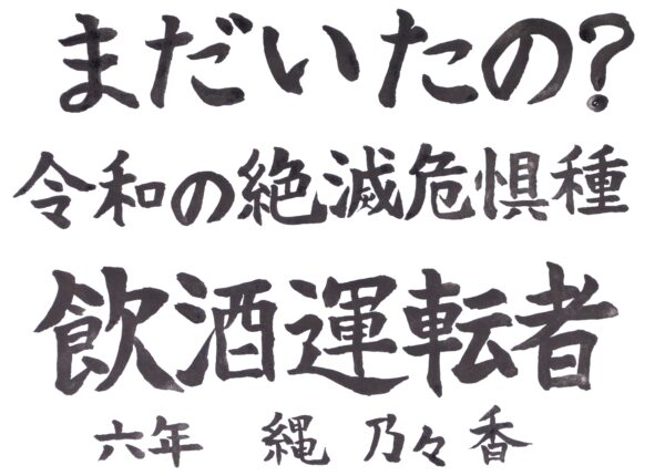 飲酒運転をする人が将来いなくなってほしいという願いを、「絶滅危惧種」という言葉に込めて書きました。